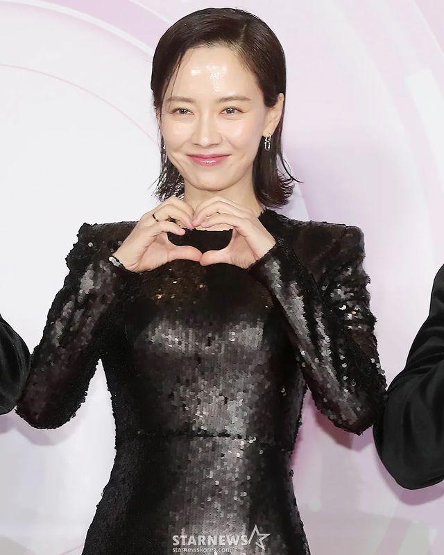 宋智孝紧身亮片裙超「腰瘦」,与金钟国红毯对看「小互动」甜甜的