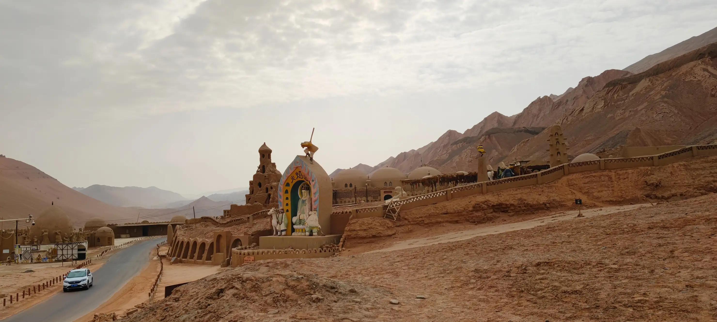 火焰山景区正门,就是从猴子身后的沟壑里穿越出来